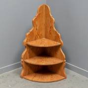 Houten hoekkastje met gehout decor en drie schappen, 78 x 30 x 30 cm