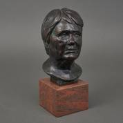 Pieter Moerenhout (1930-2018), bronzen portretbuste: 'Gré Moerenhout', gemonogrammeerd, op vierkant rood natuurstenen basement, 38 x 17 x 18 cm