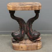 Gesneden houten onderstel in de vorm van twee zeewezens -oorspronkelijk deel van groter geheel-, 74 x 53 x 26 cm