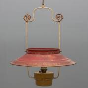 Hangolielamp met rood-gouden lakwerk kap, 75 x Ø 65 cm