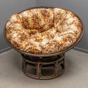 Grote ronde, bruingebeitste rotan draaistoel met florale velours bekleding, jaren '70 -gebruikssporen-, 97 x 135 x 125 cm