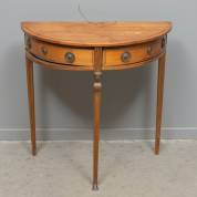Mahonie halvemaantafeltje met twee lades, en messing biezen, empire-stijl, 19e eeuw -defecten biezen, vlekken in blad-, 76 x 76 x 40 cm