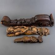Twee gesneden meubelornamenten, waarvan één vermaakt tot wandconsole, 20e eeuw, en één gegoten wandornament - lichte gebruikssporen, onderkant gegoten console defect-