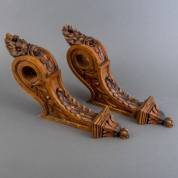 Paar eiken wandconsoles met uitsparing voor ronde stok, 19e/20e eeuw -oude houtwormgaatjes-, 33 x 45 x 9 cm