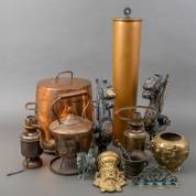 Divers koper en messing, waaronder: doofpot en een vijzel met stamper -gebruikssporen-
