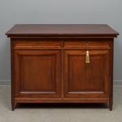Mahonie klapbuffet, de klep met twee plankjes, de kast met twee lades en twee deuren, aan beide kanten uitschuifbladen, circa 1900 -reparatie aan zijstijl, scheuren-, 96 x 130 x 60 cm