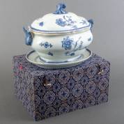 Chinees porseleinen terrine op onderschotel met blauw-wit bloemdecor, model Nejlika, in opdracht voor Ikea, Zweden, jaren '90, in originele verpakkingsdoos, 29 x 35 x 25 cm