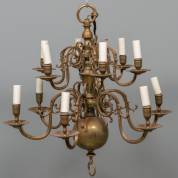 Twaalflichts messing bolkroon, begin 20e eeuw -geëlektrificeerd-, 70 x Ø 65 cm