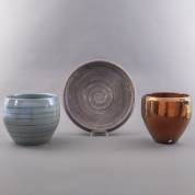 Twee keramische cache-pots en een keramische schaal, alle uitvoering Mobach, Utrecht, 25 x Ø 28 cm