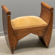 Eiken kruk met opstaande armleggers en druppelvormige palissander appliques bij de poten, Amsterdamse School, 59 x 62 x 35 cm