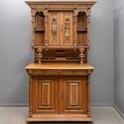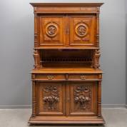 Notenhouten buffet met opstand, de deuren met gestoken medaillons, Frankrijk, eind 19e eeuw -gebruikssporen-, 223 x 140 x 60 cm
