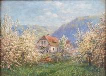 Duitse School: 'Frühling im Schwarzwald', olieverf op paneel, l.o. gesigneerd F. Arnold, 16 x 22,5 cm