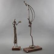 Twee Afrikaanse metalen beelden: zogende moeder, en moeder met kind op de heup, 86 x 30 x 14 cm