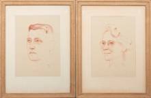 Toon Kelder (1892-1973), paar pendantportretten: man en vrouw, rood krijt op papier, beide r.o. gesigneerd en gedateerd 1952, 40,5 x 29,5 cm