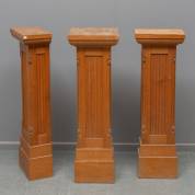 Serie van drie eiken gecanneleerde piëdestals: één vrijstaande en twee halve voor tegen de muur, eerste helft -lichte gebruikssporen-, 89 x 29 x 29 cm
