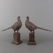 Paar kunststof fazanten op basement, modern -één gebroken bij poten-, 37 x 39 x 12 cm