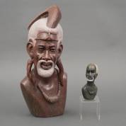 Afrikaanse School, twee natuurstenen borstbeelden, één gesigneerd 'Dennis Gatsi' -krassen-, 45 x 20 x 20 cm