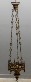 Messing neogotische hanglamp, 19e eeuw, 120 x Ø30 cm