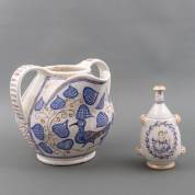 Grote aardewerk waterkan gedecoreerd met vogel- en bloemdecor, en waterkruikje gedecoreerd met putto, Italië, 20e eeuw, 33 x 37 x 38 cm