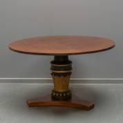 Ronde mahonie salontafel met groen-goudgeschilderde gesneden poot, Hollands, Empire -ingekort van hoger model-, 56 x Ø 95 cm