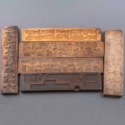 Vijf dubbelzijdige speculaasplanken en één enkelzijdige marsepeinplank, 19e eeuw, 56 x 14 x 3,5 cm