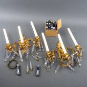 Paar bronzen drielichts wandlampen met kristallen pegels, Louis Quinze-stijl, inclusief voorraad lampjes, 44 x 37 x 14 cm
