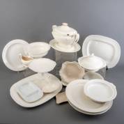Diverse crèmekleurige aardewerk serviesdelen, diverse uitvoeringen -defecten-