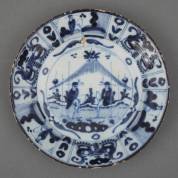 Delfts aardewerk diep bord met blauw-wit chinoiseriedecor, Wanli-stijl, 17e eeuw -randschilfers-, 4,5 Ø 26 cm