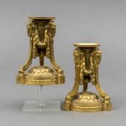 Paar verguld bronzen kandelaartjes met rammascarons, 19e eeuw, 12 cm