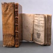 Drie boeken: Coesveldt, R. (bedienaer des godlijcken woordts tot Bunnick). 'Geestelycke anatomie'. Utrecht, L. de Vries, boeck-verkooper onder de Snippe-Vlucht, 1658. 16mo. Perkament; W. Cave, 'Het eerste christendom. Vertaalt door S. Bor, predikant tot Zeyst'. 1711. Kl. 8vo. Perkament. Met titelprent en 4 platen -platen beschadigd-; 'Het lyden van Jesus, als de Christus ... zo als in de gereformeerde Nederduitsche kerken van Utrecht gepredikt wordt. Mitsgaders eene naamlyst van alle de predikanten die zedert de Hervorming, deeze gemeinte bediend hebben. Utrecht, J. Reers, 1763. Kl. 8vo. Leder -ouderdomssporen-, 15,5 x 11 x 4 cm