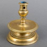 Messing kandelaar op brede ronde voet, Spanje, eind 16e/begin 17e eeuw, 16 x Ø13 cm