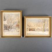 Johannes Hendrik Eversen (1906-1995), twee werkjes: winterse tuingezichten in Bennekom, beide olieverf op paneel, één l.o. gesigneerd en gedateerd 13-2-56, de ander verso gesigneerd en gedateerd 13-2-56, 23 x 17 cm