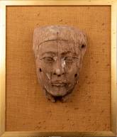 Gesneden houten dodenmasker, Egypte, late dynastieën/Ptolemaeën, op board gemonteerd, 52,6 x 43 x 14 cm
