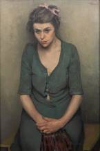Wouter Jorinus Bernardus Antonius 'Wout' Schram (1895-1987), portret van Corry Vonk, de vrouw van Wim Kan, olieverf op doek, r.b. gesigneerd, herkomst: Christie's Amsterdam, 8 december 1988, lot 174 -gaatje in doek gerestaureerd rechtsonder-, 89 x 59 cm