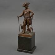 Naar Johann Gottfried Schadow (1764-1850), Frederik de Grote met twee honden, brons, gietersmerk Hermann Noack, op natuurstenen basement, 20e eeuw -chips van basement-, 44 x 13 x 15 cm