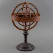 Houten armillarium met weergave van het heliocentrisch model van het universum volgens Copernicus, de bogen voorzien van bedrukt papier, Frankrijk, 18e eeuw -de zon en de aarde ontbreken, defecten-, 48 x Ø 28 cm