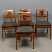 Vier mahonie stoelen met inlegwerk en zwarte paardenhaar zittingen, 19e eeuw, 84 x 48 x 40 cm