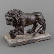 Bronzen beeldje: leeuw, op natuurstenen basement, 15 x 19 x 10 cm