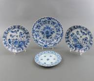 Paar Delfts aardewerk borden met blauw-wit vogel- en bloemdecor, bord met gecontourneerde rand en bloemdecor, uitvoering De Porceleyne Byl, gemerkt, en schotel met bloemdecor, alle 18e eeuw -alle met kleine randchips-, Ø 30 cm