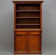 Mahonie boekenkast, de onderkast met twee lades en twee deuren, Engeland, 19e eeuw -gebruikssporen, enkele loszittende stukjes fineer-, 200 x 107 x 37 cm