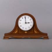 Pendule in mahoniegefineerde kast met biezen en parelmoer inlegwerk, 20e eeuw -gebruikssporen-, 24 x 43,5 x 8,5 cm