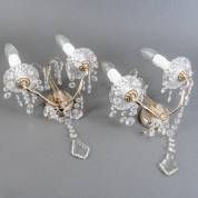 Paar goudkleurige metalen wandlampjes met kristallen kralenstrengen, 20e eeuw, 46 x 21 x 11 cm