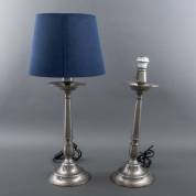 Paar metalen lampvoeten, één voorzien van blauwe kap, modern -lichte gebruikssporen, 73 x Ø33 cm