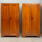 Paar teakhouten tweedeurs kasten, 20e eeuw -gebruikssporen-, 200 x 107 x 54 cm