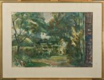 Sierk Schröder (1903-2002), lezend in de tuin, aquarel, l.o. gesigneerd en gedateerd '69, 36 x 52 cm
