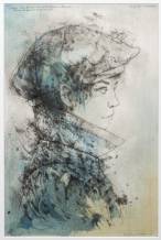 Dirkje Kuik (1928-2008), 'Portretstudie met Engelse pet', aquarelpotlood, grijs potlood, en Oost-Indische inkt op papier, r.o./r.b. gesigneerd en gedateerd '93, 45 x 29,5 cm