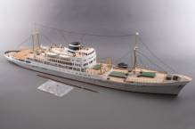 Groot houten modelschip: 'Oranje Nassau, Amsterdam', 20e eeuw -gebruikssporen, verfverlies-, 43 x178 x 24 cm