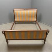 Mahonie bed, de gestoffeerde eindes met gesneden zwanenhalzen, biedermeier -gebruikssporen-, 110 x 160 x 230 cm