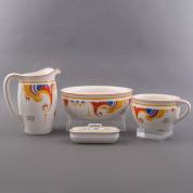 Lampetstel, decor SV432C, uitvoering Société Ceramique Maastricht, bestaande uit: lampetkan, waskom, po en kammenbakje -gebruikssporen, craquelé-, 29,5 x Ø 25 cm