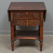 Mahonie dienkastje met messing beslag, twee lades, étagère, en aan beide kanten een opklapbaar blad, 19e eeuw -gebruikssporen-, 68 x 55 x 46 cm